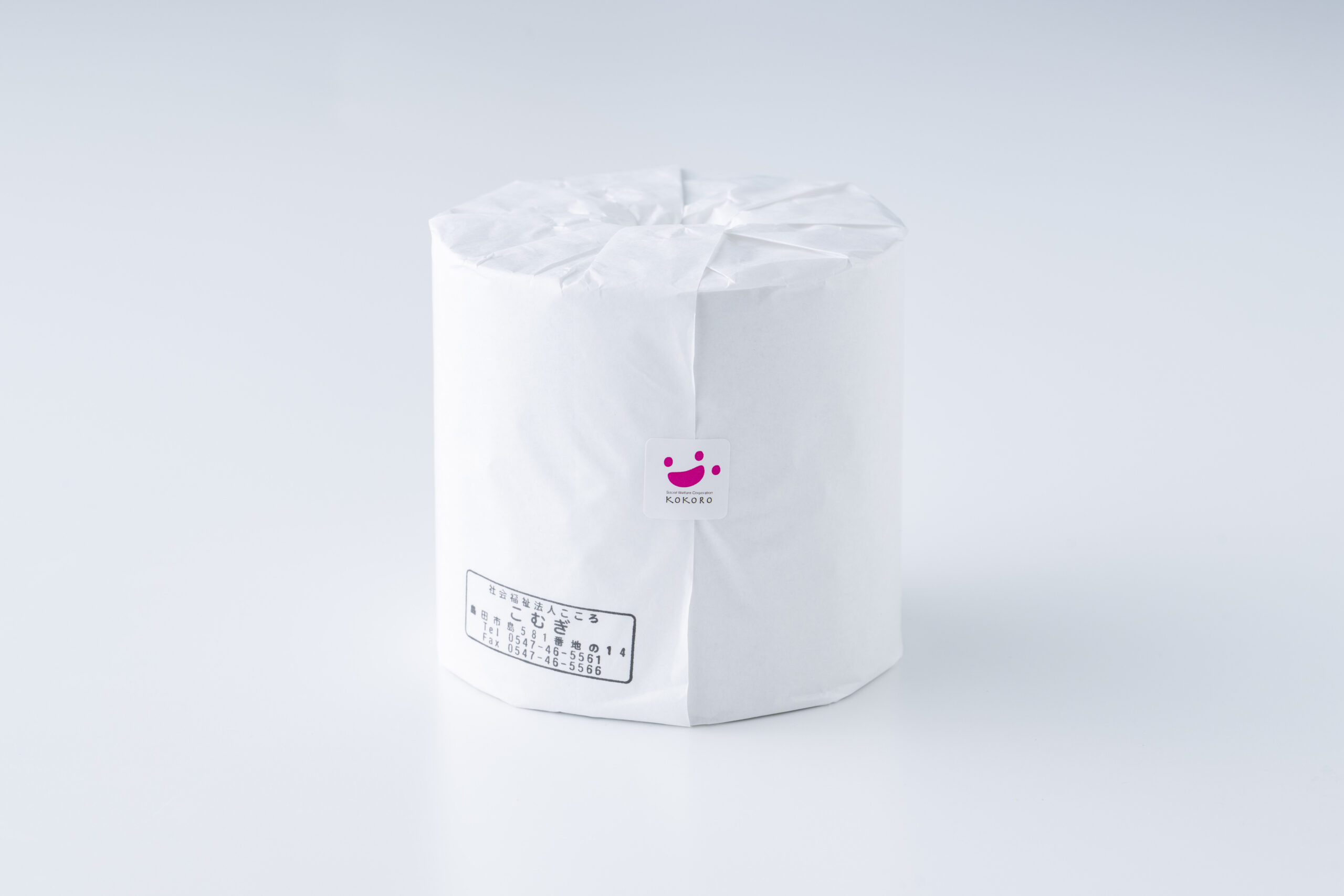 芯なしトイレットペーパーです。ひとつひとつ心を込めて丁寧に包装しています。障害者優先調達法の対象となる商品であり、利用者の工賃アップや地元企業との連携がメンバーのやりがいにもつながります。